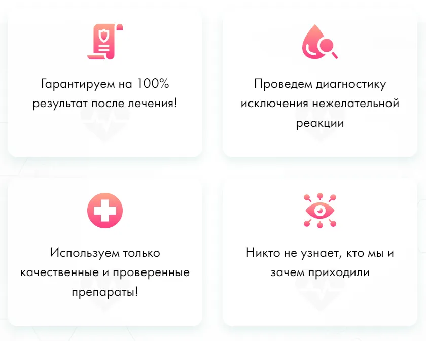 В коммерческой клинике есть собственная круглосуточная служба скорой помощи, которая на вызов в течение нескольких минут, принимая нужные меры для организации анонимного формата и быстрого улучшения самочувствия пациента.